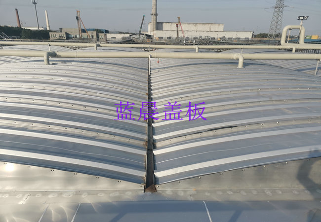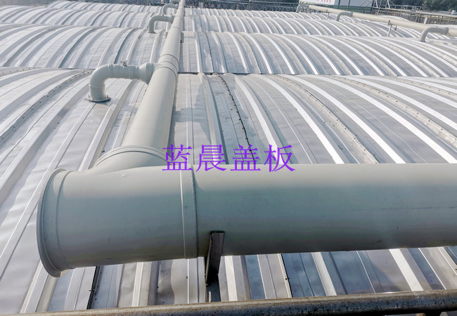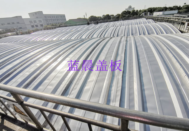 一、工程简介:江苏无锡某污水处理厂污水池加盖案例,污水池加盖面积为1200平方米,池体最大跨度7米,盖板主要材质为SUS304不锈钢,盖板材质厚度为1.0mm,普通低盖方式。 二、设计参数: 1、池体跨度:6.8m 2、盖板材质:SUS304 3、盖板厚度:1.0mm 4、拱 高: 0.6m 5、静 载 荷: 3.5kN/m2 6、基本雪压: 3kN/m2 三、不锈钢污水池盖板主要特点: 01、抗腐蚀能力强、耐高温与超低温 不锈钢污水池盖板主要采用SUS304、316L不锈钢材质,耐空气、蒸汽、耐酸碱性等化学性腐蚀,并具有良好的耐热性,在超高低温环境下没有延伸、凹下、凸出无发生破裂、断裂现象。 02、强度高、易拆装、可设计性强 不锈钢污水池盖板为组合式结构,易拆装,盖板间用螺栓连接拆卸更方便; 盖板表面通过波纹加劲,质轻强度高, 12米大跨度内无需另加骨架;可以供行人、机器在盖板表面进行施工,耐候性好,可在恶劣气候条件下承受雨雪的重量; 产品尺寸大小可设计性强,可根据现场池体特定情况灵活设计。 03、美观耐用、使用寿命长、维护简单 不锈钢污水池盖板具有美观的表面,不必经过镀色等表面处理;使用寿命长,不易老化,无需后期维护。 04、安全防火、残值高、可回收再利用 不锈钢污水池盖板不可燃烧,可杜绝火灾隐患,满足各行业的消防标准;并可回收再利用,无固废之忧,更经济适用。 四、污水池加盖现场图: